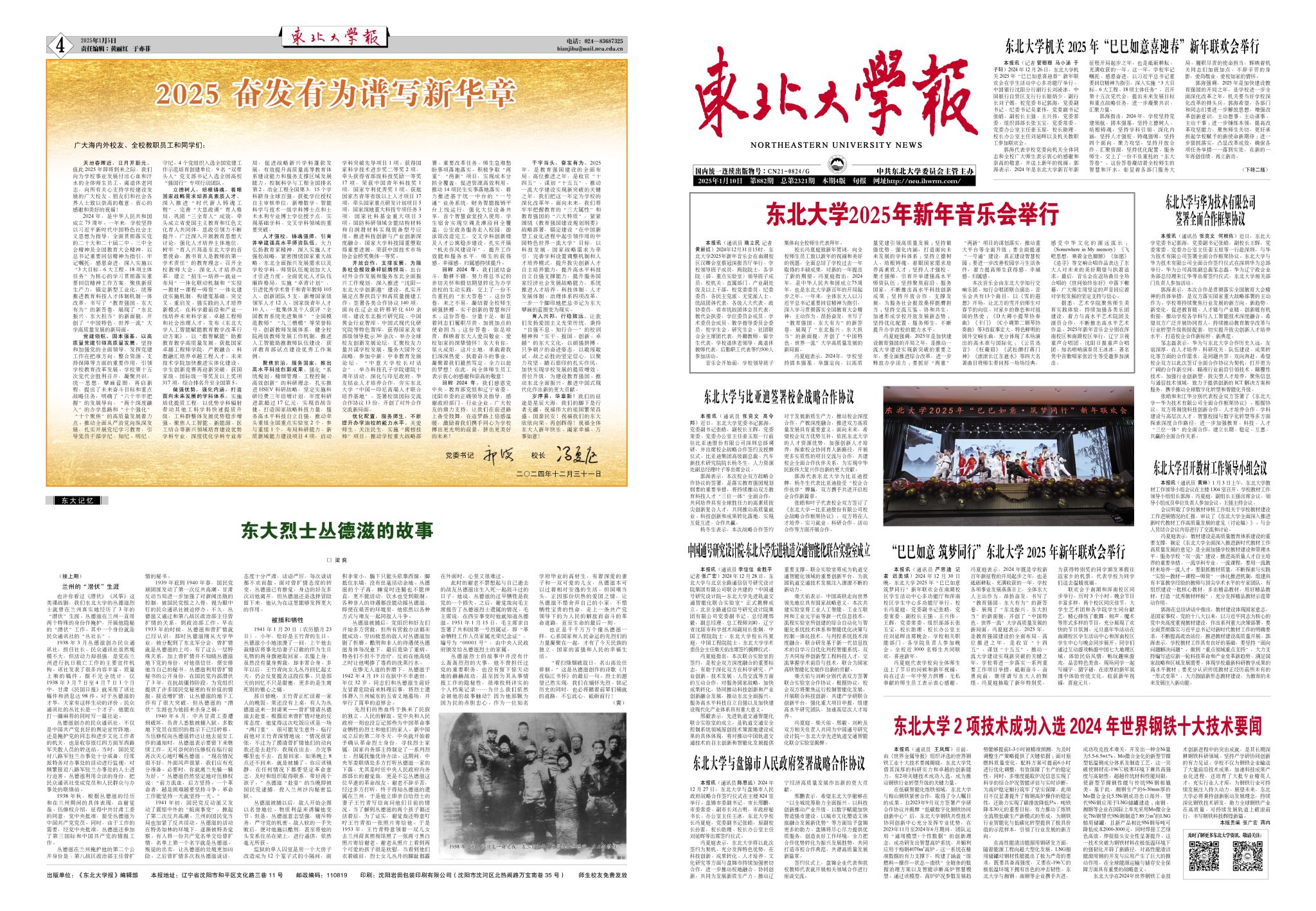 《东北大学报》总第2321期(2025.01.10)