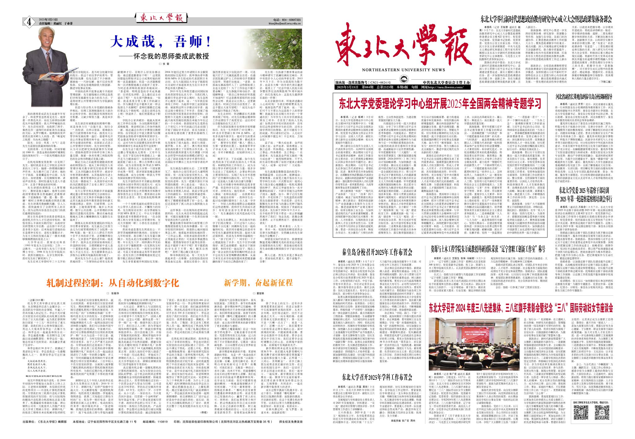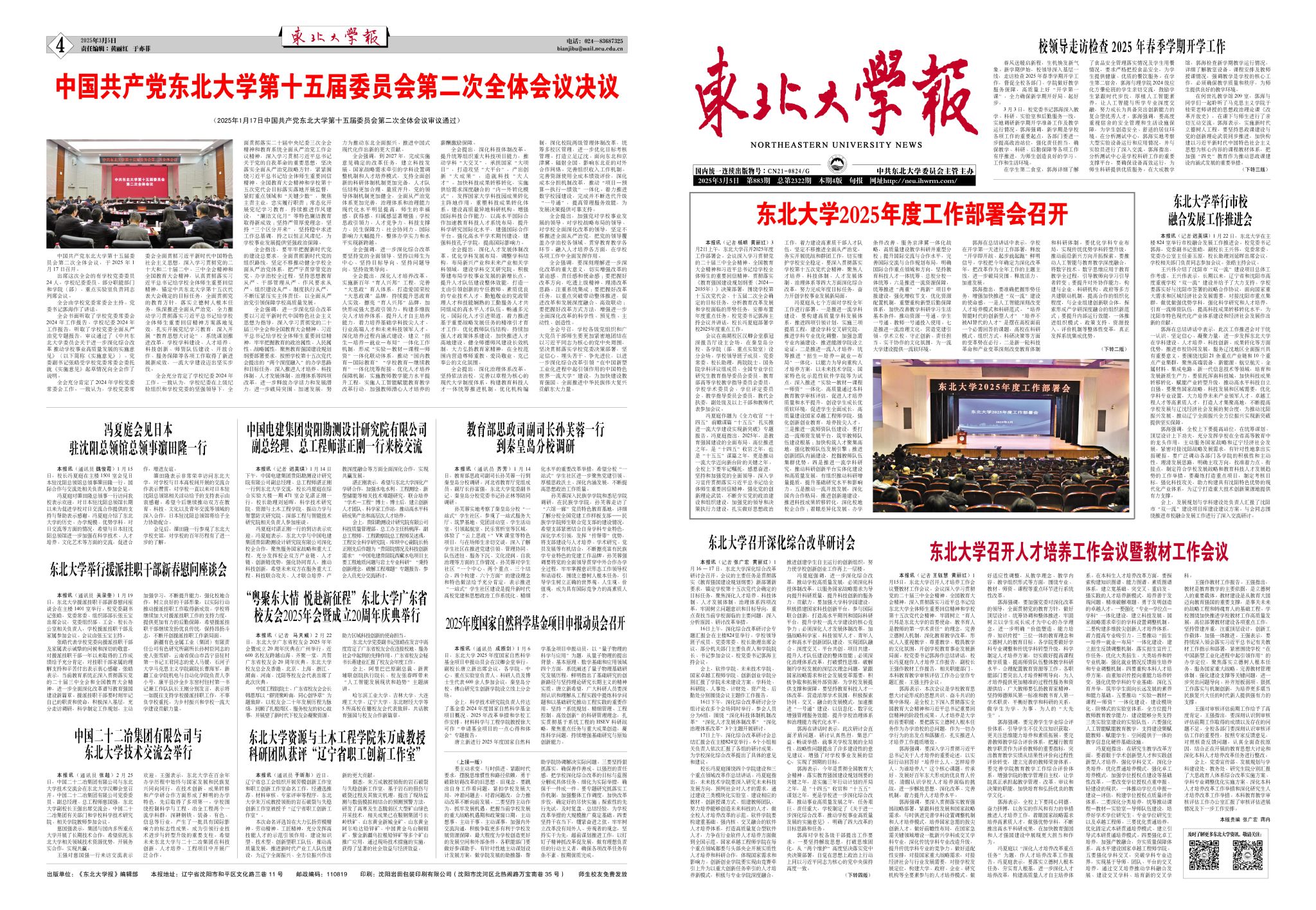 《东北大学报》总第2322期(2025.03.05)
