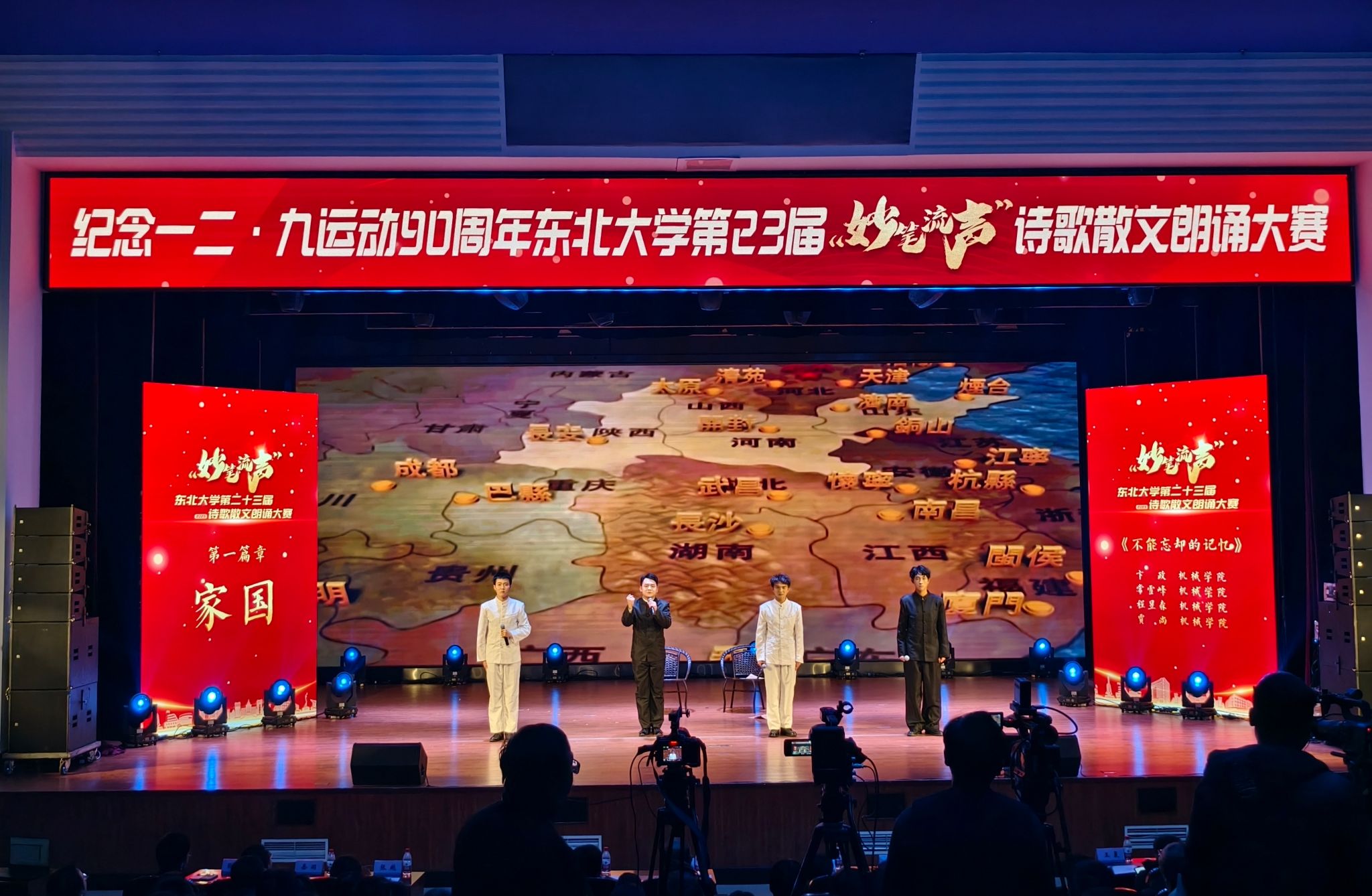 据悉,本次征文朗诵比赛受到同学们的广泛关注和积极参与。征文比赛环节自10月启动以来,共收到征文参赛作品1417篇。朗诵比赛环节,经过初赛、复赛的选拔,共有12支参赛队伍进入决赛。东北大学“妙笔流声”诗歌散文大赛自2003年举办以来,已经成功举办了23届。23年间,大赛累计征集原创文学作品万余篇,选拔舞台朗诵选手4000余人次,现场参与活动师生逾20000人,打造了弘扬东大爱国主义光荣传统、紧贴时代脉搏、深受学生喜爱的文化育人品牌。
