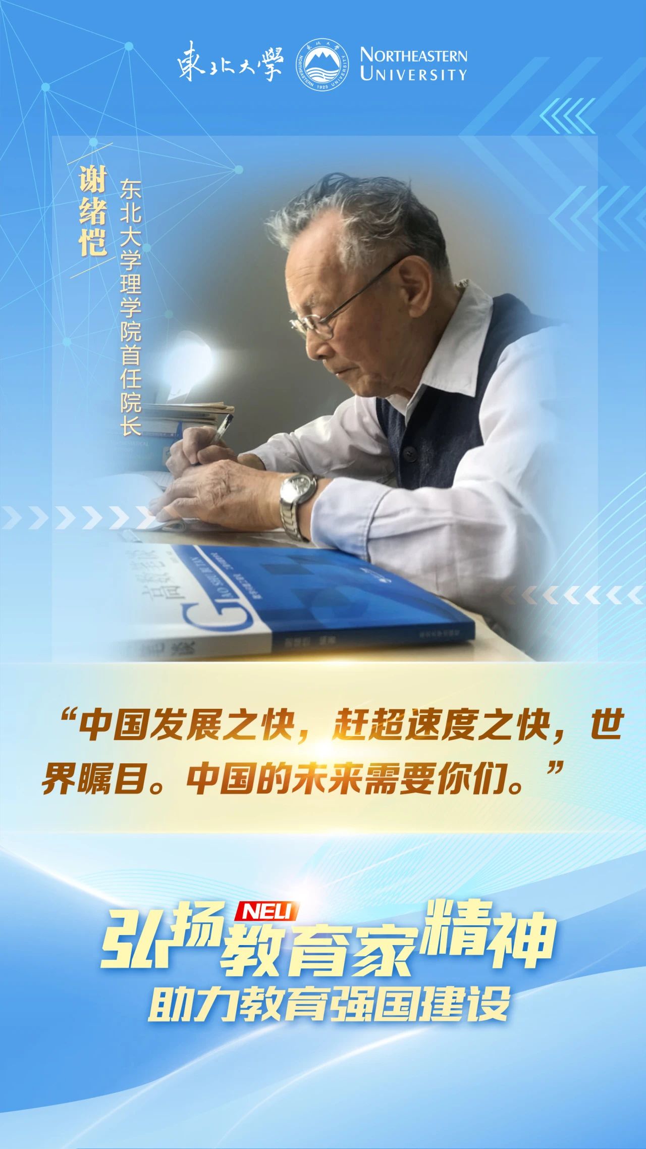 东北大学谢绪恺教授,三十而立,以他创新理论命名的成果就惊艳了学界;耄耋之年,依旧为学生笔耕不辍,写就“一看就懂”的高数辅导“四部曲”;为科学真理立说,为莘莘学子解惑,他从教55载不改师者本色,用一生诠释了大师之大学问和大先生之大德。