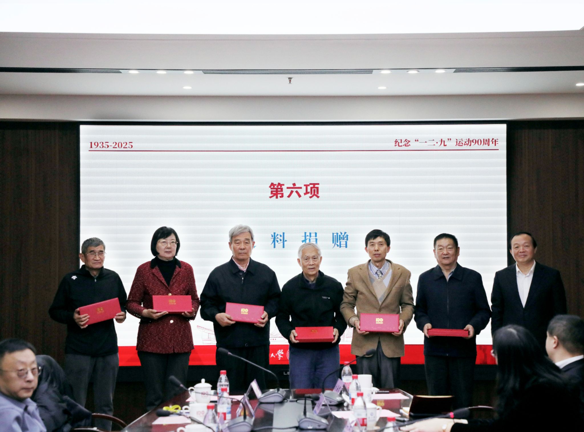 座谈会上,与会人员共同观看了主题视频《永远的“一二·九”》。亲历“一二·九”运动校友亲属代表王敬桓之子王南阳、王振乾之子王超湛、胡开明之子胡战生、郭维城之女郭梅、邹鲁风之子邹伏婴分享了老校友们在民族危难之际挺身而出的爱国报国故事,并向学校捐赠了历史资料。