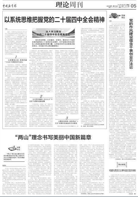 党的二十届四中全会通过的《中共中央关于制定国民经济和社会发展第十五个五年规划的建议》(以下简称《建议》)科学部署了“十五五”时期战略任务、擘画了经济社会高质量发展新蓝图,为确保基本实现社会主义现代化取得决定性进展指明了方向和路径。系统思维作为认识和处理复杂问题的基础性思想和工作方法,是深刻把握党的二十届四中全会精神的一把“金钥匙”。坚持系统思维,从前瞻性、全局性、整体性三个维度全面把握党的二十届四中全会精神,对于凝聚全党全国各族人民团结奋进的磅礴力量,以中国式现代化全面推进强国建设、民族复兴伟业具有重要意义。