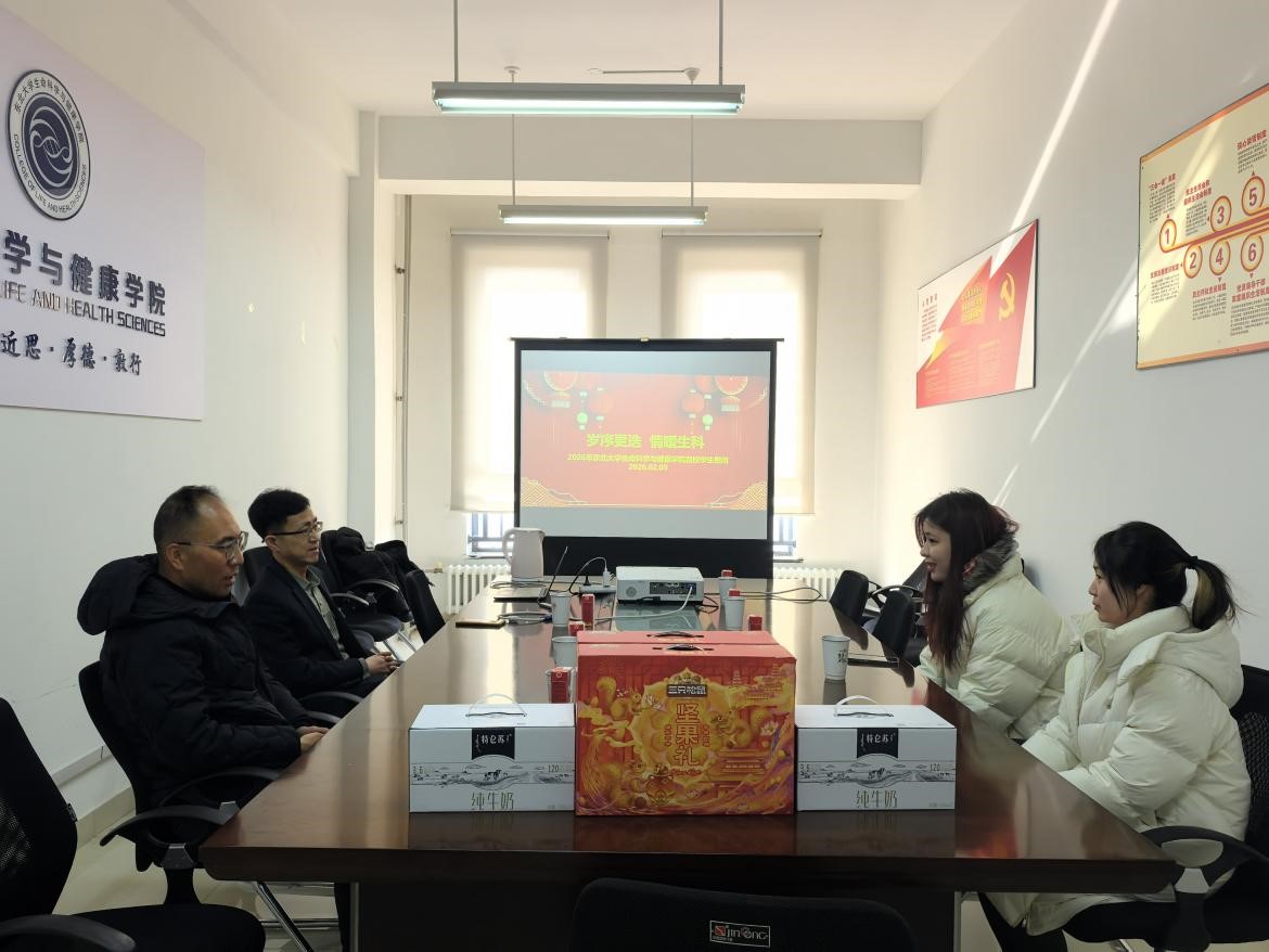 2月9日,在2026年新春佳节来临之际,生命科学与健康学院在生命学馆A327会议室召开春节留校学生慰问交流会。学院领导班子成员、学生工作干部代表学院为留校学生送上关怀与节日祝福,春节留校学生代表参加活动。