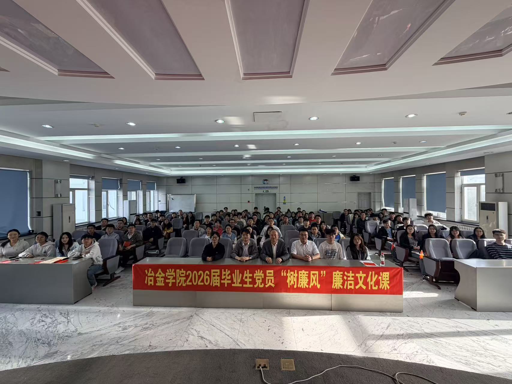 为持续巩固冶金学院毕业生党员廉洁文化课品牌成效,4月21日,冶金学院举办“植根白山黑土,熔铸清正风骨”2026届毕业生党员“树廉风”廉洁文化课,学院党委书记张耀伟出席活动并为毕业生党员上党课,100余名本硕毕业生党员参加了活动。