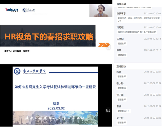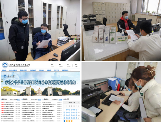 疫情防控常态化下,学校还将持续开展东北大学2022年春季网络双选会、东北大学&大连理工大学联合网络双选会等各类网络招聘活动,每日分类整理推送招聘信息,通过抖音和快手“东大就业”短视频平台发布用人单位校招视频,助力毕业生高质量就业。