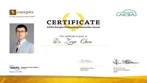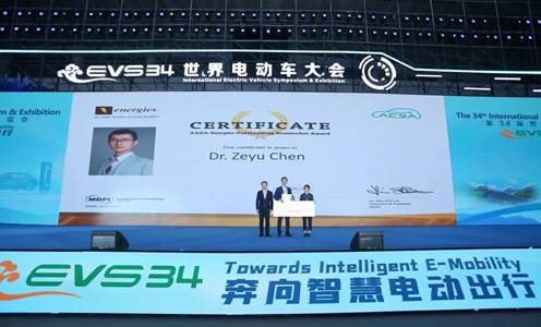 6月25—28日,第三十四届世界电动车大会(EVS34)在南京空港国际博览中心盛大召开。EVS34大会由中国电工技术学会联合世界电动车协会、亚太电动车协会以及南京市人民政府共同主办,展会规模超过30000平方米,来自国内外电动汽车领域的2000多位学者和企业代表参会,以“奔向智慧电动出行”为主题,围绕深入实施“双碳”发展、落实新能源汽车产业规划,开展了学术与技术交流。大会同时颁发了AESA-Energies全球人才奖及EVS34最佳论文奖,我校机械工程与自动化学院陈泽宇副教授获评AESA-Energies全球优秀人才奖,并获得了由Energies期刊赞助的500瑞士法郎奖励。