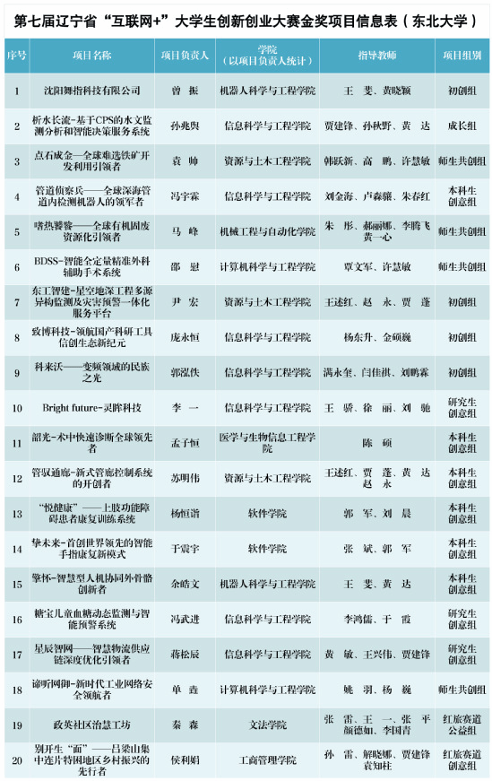 7月24—28日,由辽宁省教育厅主办的第七届辽宁省“互联网+”大学生创新创业大赛暨第七届“互联网+”中国国际大学生创新创业大赛辽宁省赛决赛在中国医科大学及网络端举行。我校学生团队在94所高校报名参赛的三万余个项目中脱颖而出,获得了20金5银10铜的优异成绩,主赛道金奖总数连续四年第一。其中由机器人科学与工程学院王斐教授指导、机器人学院硕士生曾振任法人的沈阳舞指科技有限公司获得初创组第一名,由信息科学与工程学院本科毕业生孙兆舆任法人的析水长流—基于CPS的水文监测分析和智能决策服务系统获得成长组第一名。