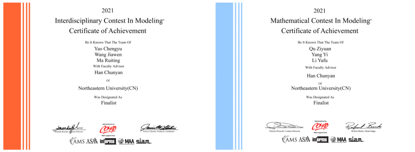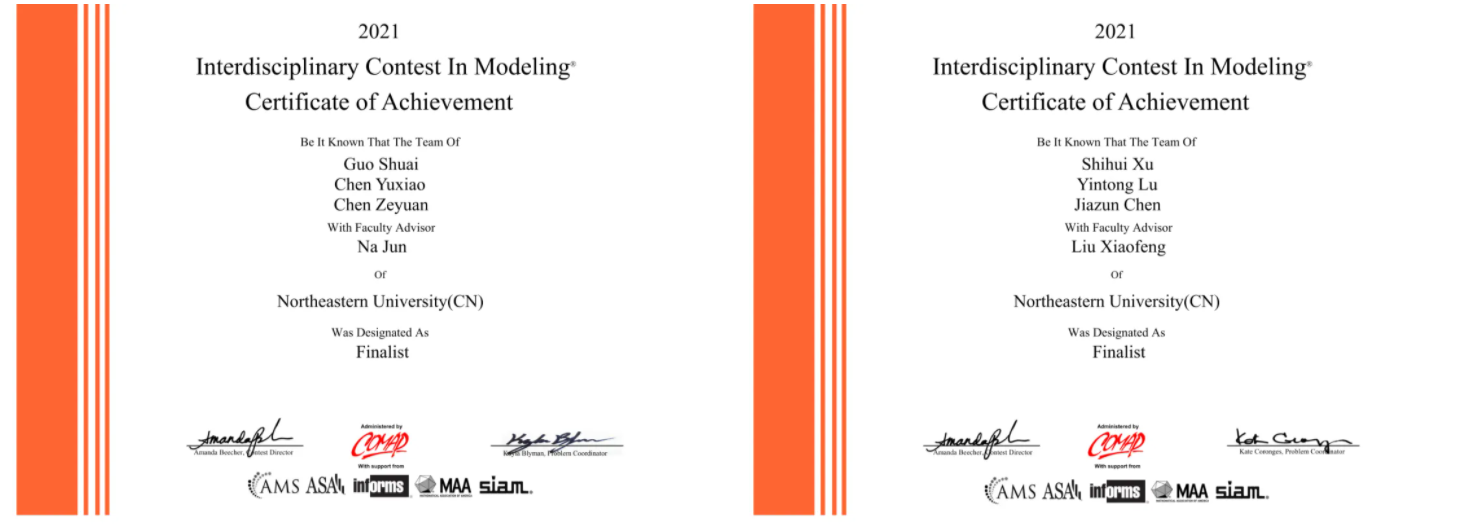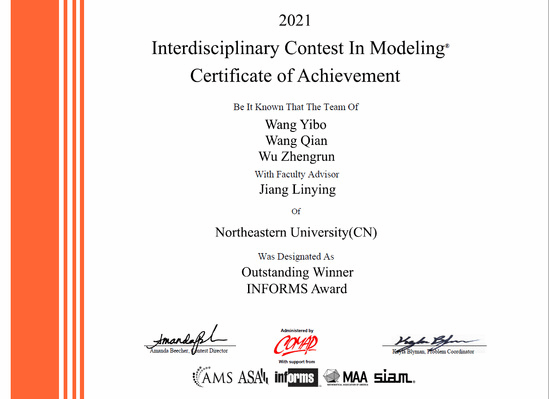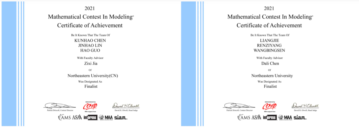 近日,2021年国际大学生数学建模竞赛(MCM/ICM)成绩揭晓。东北大学学生在本次竞赛中获得国际特等奖(Outstanding Winner)1项,国际特等奖提名奖(Finalist)6项,国际一等奖(Meritorious Winner)17项,国际二等奖(Honorable Mention)61项,获近年来最好成绩。