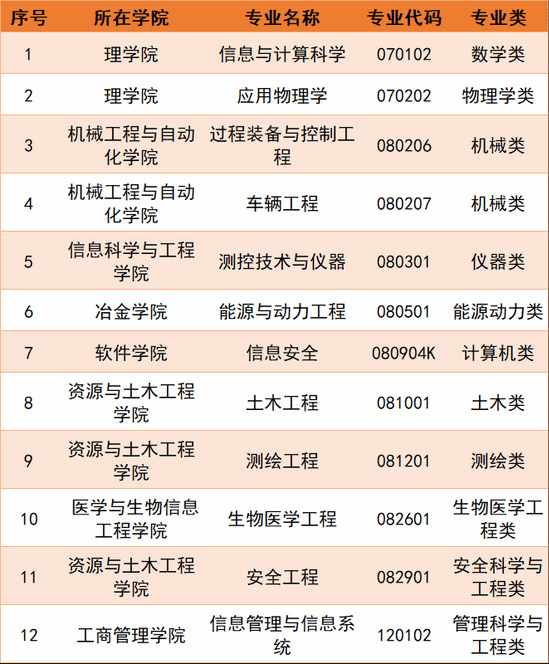 东北大学“2020年度省级一流本科专业建设点”专业名单