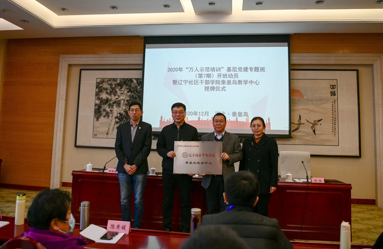 12月3日,秦皇岛分校举行2020年河北省“万人示范培训”基层党建专题班开班动员暨辽宁社区干部学院秦皇岛教学中心授牌仪式。东北大学秦皇岛分校副校长王雷震,辽宁社区干部学院副院长、东北大学文法学院院长张雷,秦皇岛分校继续教育学院院长邹振栋等出席开班动员和授牌仪式。