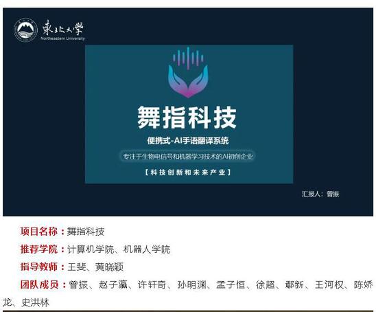 在省赛中,东大学子共获金奖19项、银奖7项、铜奖2项,累计获奖28项,金奖数量及获奖数量均为全省第一,捧得第十二届“挑战杯”辽宁省大学生创业计划竞赛“挑战杯”(总积分第一高校),并成功推荐6个项目进入国家级比赛。在国赛中,以曾振同学“舞指科技”为代表的东北大学大学生创业项目以其扎实的实践过程、丰硕的实践成果和巨大的社会及市场前景,得到了评审专家的高度认可和好评,最终实现历史性突破,获得1金1银4铜的好成绩,同时捧得集体奖“优胜杯”,这也是东北大学和辽宁省高校在该项赛事的最好成绩,是辽宁省高校首次捧得“挑战杯”中国大学生创业计划竞赛“优胜杯”。
