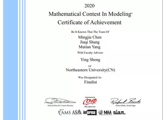 据悉,国际大学生数学建模竞赛由美国数学及其应用联合会主办,是唯一的国际性数学建模竞赛,也是世界范围内最具影响力的数学建模竞赛。竞赛始于1985年,赛题内容涉及经济、管理、环境、资源、生态、医学、安全等众多领域。