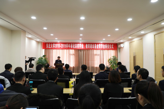 12月20日上午,东北大学2018—2019学年蔡冠深奖学金、教育建设基金奖学金颁奖仪式在蔡冠深文化中心举行。香港新华集团执行董事、新华科技集团总裁蔡隽思,东北大学副校长孙雷,学生工作处、对外联络与合作处相关负责人及获奖学生参加仪式。