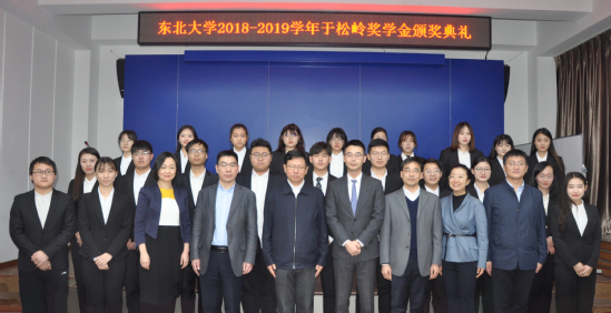 12月19日下午,东北大学2018—2019学年于松岭奖学金颁奖典礼在南湖校区建筑学馆207室举行。东方剑桥教育集团总裁于越、总裁特别助理石锐、市场部总监王薇,东北大学副校长孙雷,对外联络与合作处、理学院相关负责人及获奖学生出席颁奖典礼。