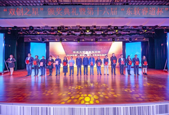 12月23日,2019年度创新创业教育“双创之星”颁奖典礼暨第十六届“东软睿道杯”大学生科技节启动仪式在秦皇岛分校大学会馆大学生礼堂举行。东北大学党委副书记、秦皇岛分校党委书记孙正林,东北大学副校长、秦皇岛分校校长刘建昌,秦皇岛市教育工委书记、教育局局长刘红军,秦皇岛市科技局局长郭拥军等出席颁奖典礼并为第十六届“东软睿道杯”大学生科技节启幕。