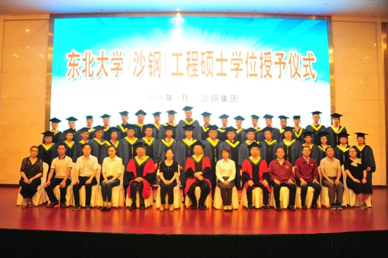 8月8日上午,东北大学沙钢工程硕士班学位授予仪式在沙钢宾馆举行。东北大学研究生院常务副院长王兴伟,东北大学无锡研究院院长安宇宏,沙钢集团董事局常务执行董事、常务副总裁陈少慧,沙钢集团党委常委、有限公司副总经理、工会主席雷学民及东北大学材料科学与工程学院、冶金学院相关教师参加典礼,东北大学材料科学与工程学院党委书记张玉宝主持典礼。