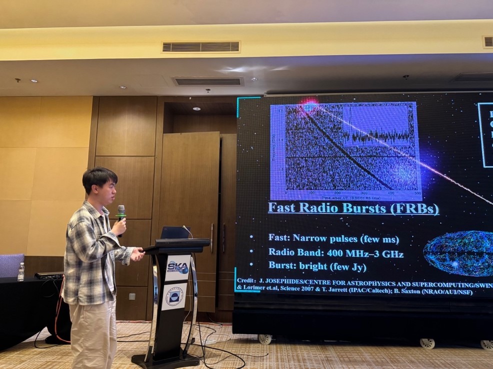 据悉,张鑫教授主持的国家重点研发计划SKA专项项目“中性氢巡天和宇宙学模拟”,旨在针对中性氢强度映射巡天完成端到端模拟并开展相关理论研究,为SKA中性氢巡天数据处理和相关科学研究提供模拟样本支持。该项目执行一年多以来,已取得重要进展。张鑫教授团队的多名研究生在本次会议上就相关议题汇报了研究工作。