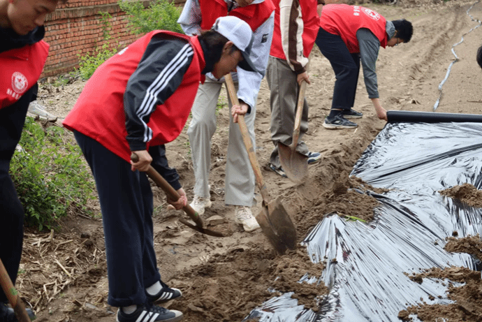 在专业人员的指导下,学生前往田间进行地瓜铺管、覆膜、压膜、栽苗等系列农业实践。通过实地劳作,学生不仅掌握了基本农耕技能,更深刻理解了“劳动创造幸福”的价值内涵。学生们表示,这种沉浸式劳动体验让课堂知识转化为实践能力,让自己在劳动中增长才干、锤炼品格、感悟价值。