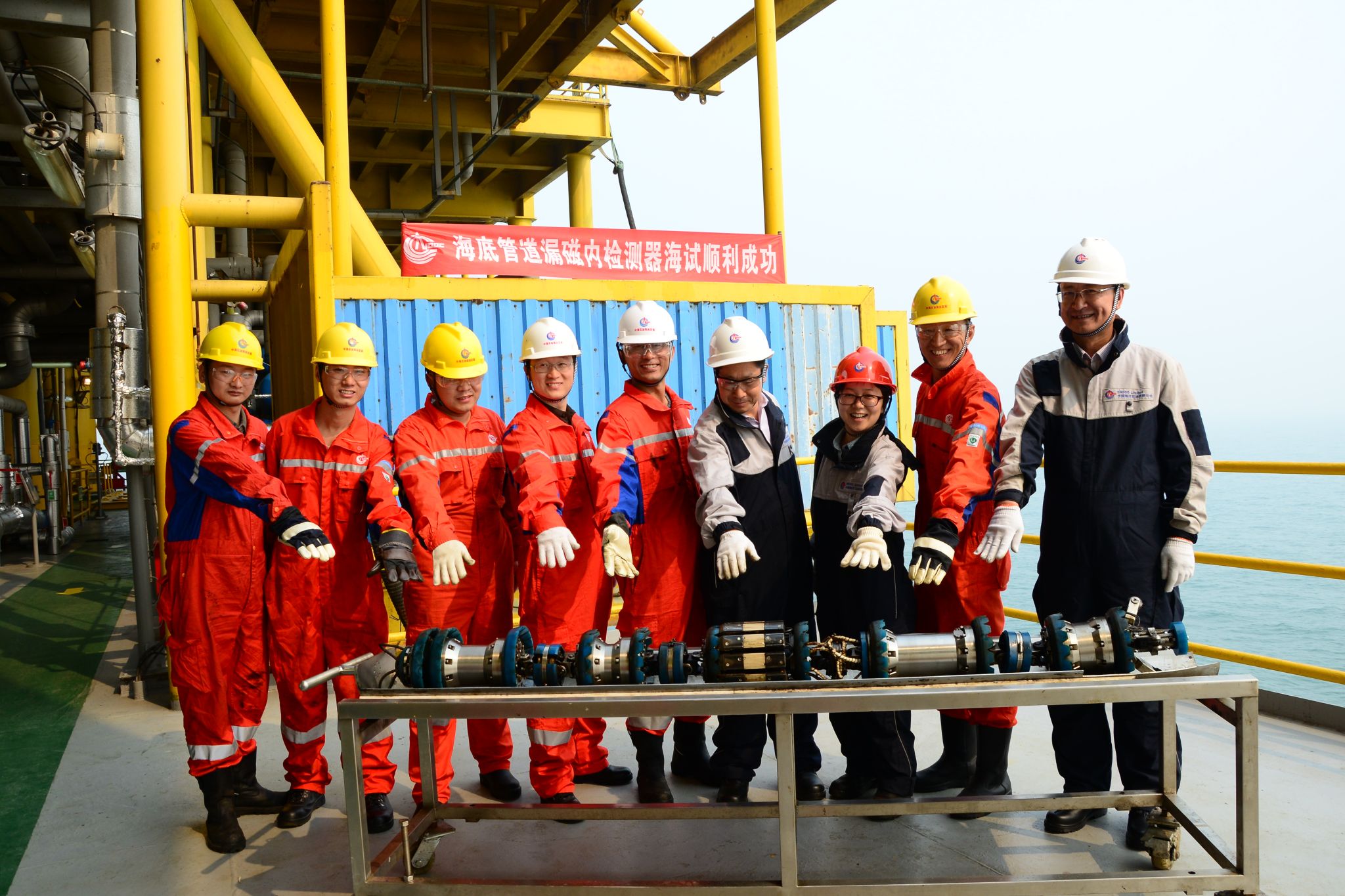 2015年10月,海底管道漏磁内检测器在中海油的两个海上油气开采平台分别进行了实用测试,并且与国际领先的同类系统进行了背靠背的验证。实验采用课题组研发的数据分析系统顺利完成数据读取,并准确判断出管道内缺陷的情况,精确度超过了预期,达到了国际先进水平。中央电视台、人民网及新华网等媒体对本技术进行了深入报道,“在海底管道内检测领域打破了国外的技术垄断,结束了我国的‘洋检测’时代,维护了我国能源和国土海洋信息安全”。