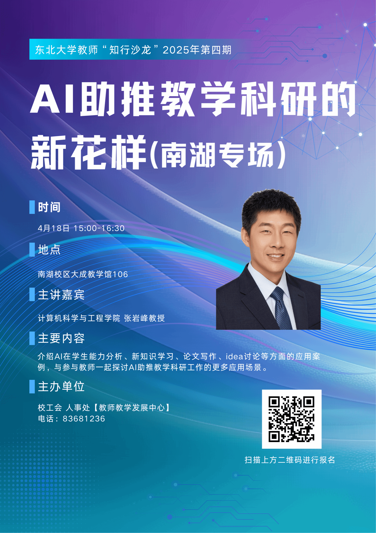 内容:介绍AI在学生能力分析、新知识学习、论文写作、idea讨论等方面的应用案例,与参与教师一起探讨AI助推教学科研工作的更多应用场景。