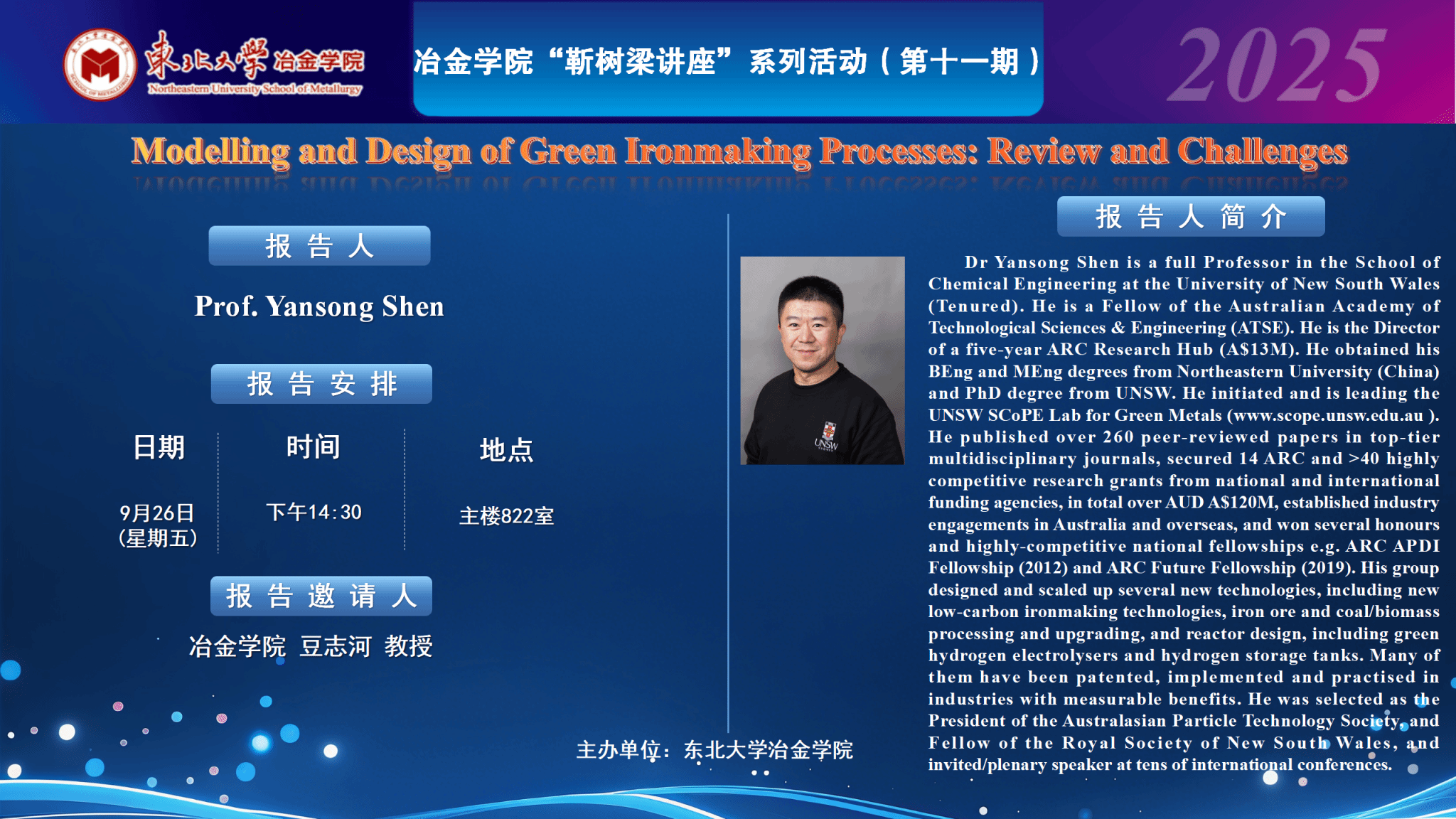 主题:冶金学院“靳树梁讲座”系列活动(第十一期)