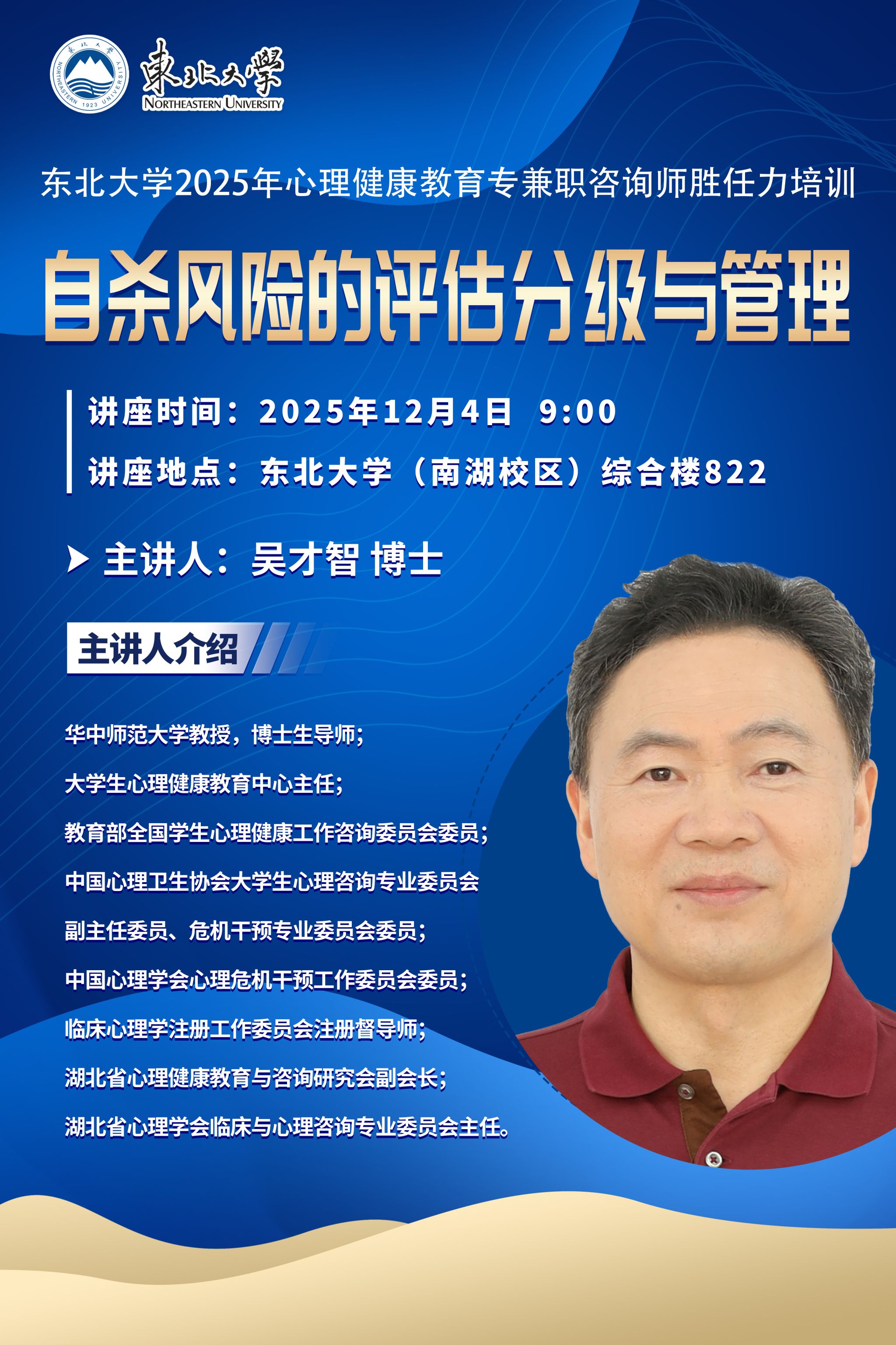 活动主题:东北大学2025年心理健康教育专兼职咨询师胜任力培训