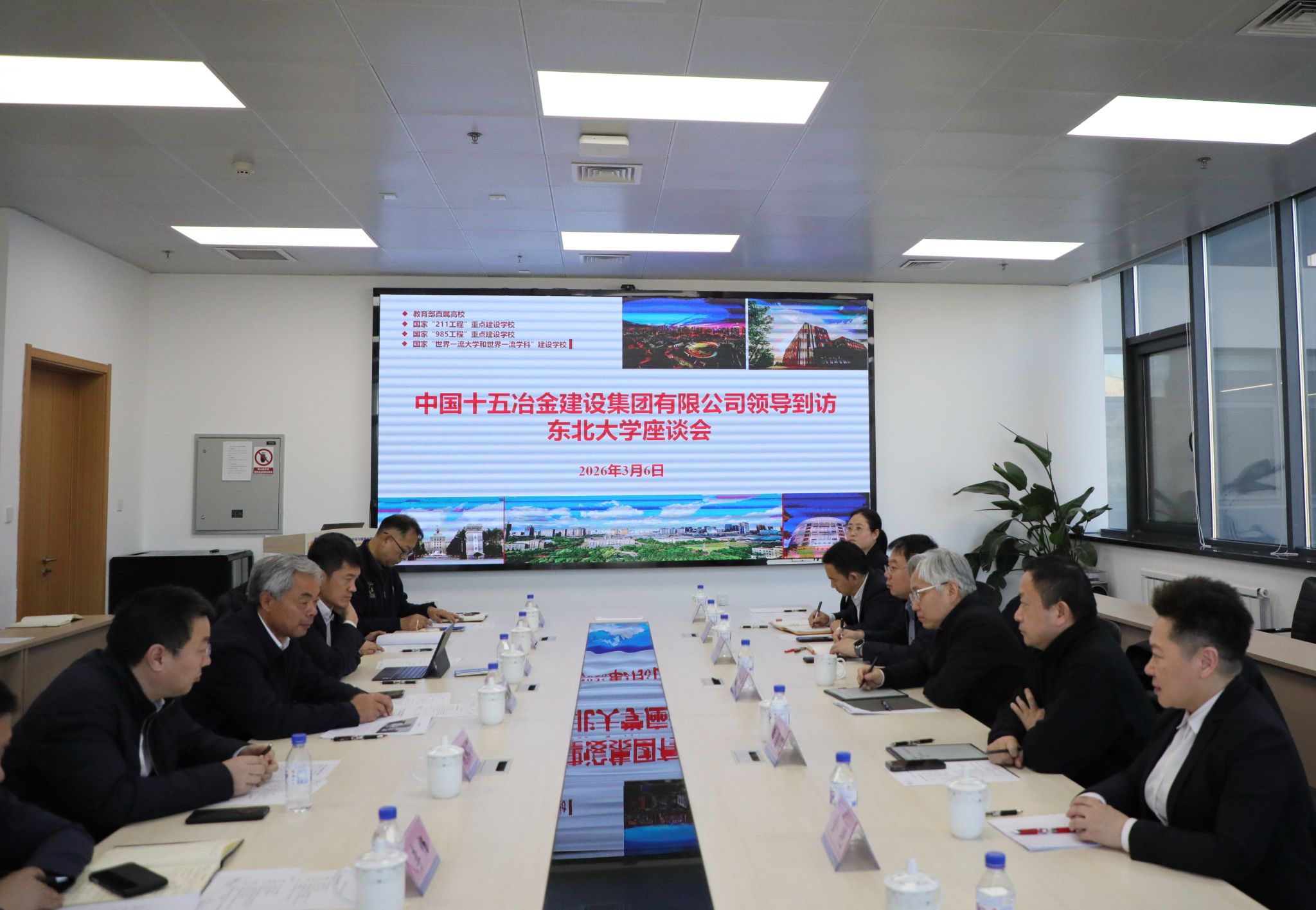 3月6日,中国十五冶金建设集团有限公司党委书记、董事长梁磊率队赴东北大学调研交流。东北大学校长冯夏庭、副校长徐伟等在学校综合交叉楼一期471室会见梁磊一行。双方围绕人才联合培养、科研技术攻关、海外业务协同推进等工作进行了深入交流。