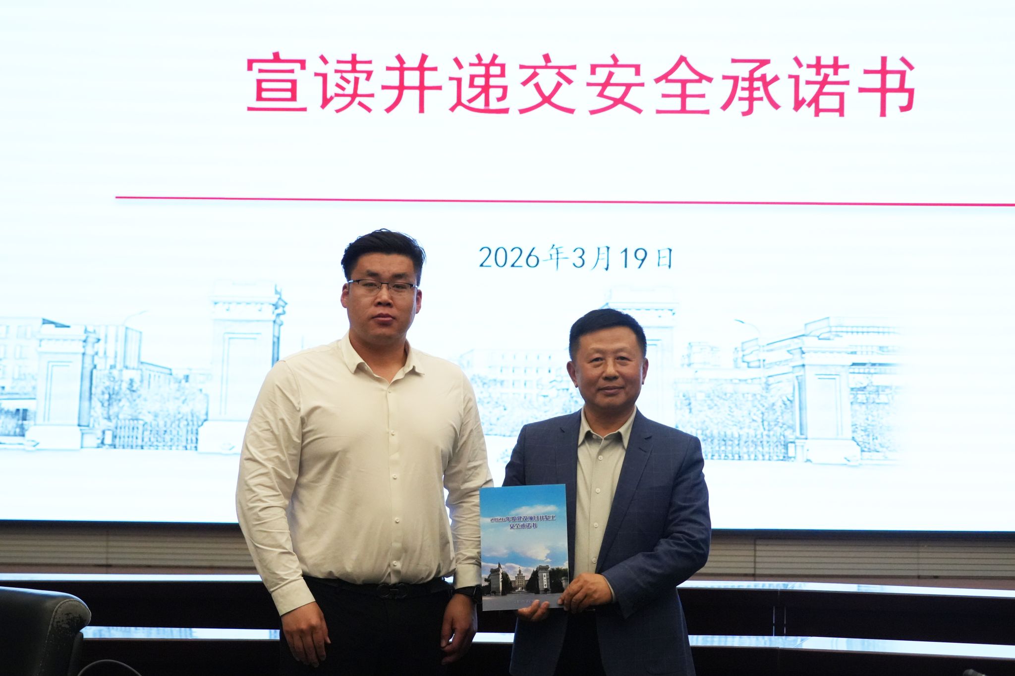 会上,各参建单位现场宣读并向学校递交安全承诺书,表示将严格落实会议要求,严守安全底线,严把施工细节,切实将安全生产工作贯穿项目建设全过程,全力打造安全工程、文明工程,为学校高质量发展筑牢基建安全保障。