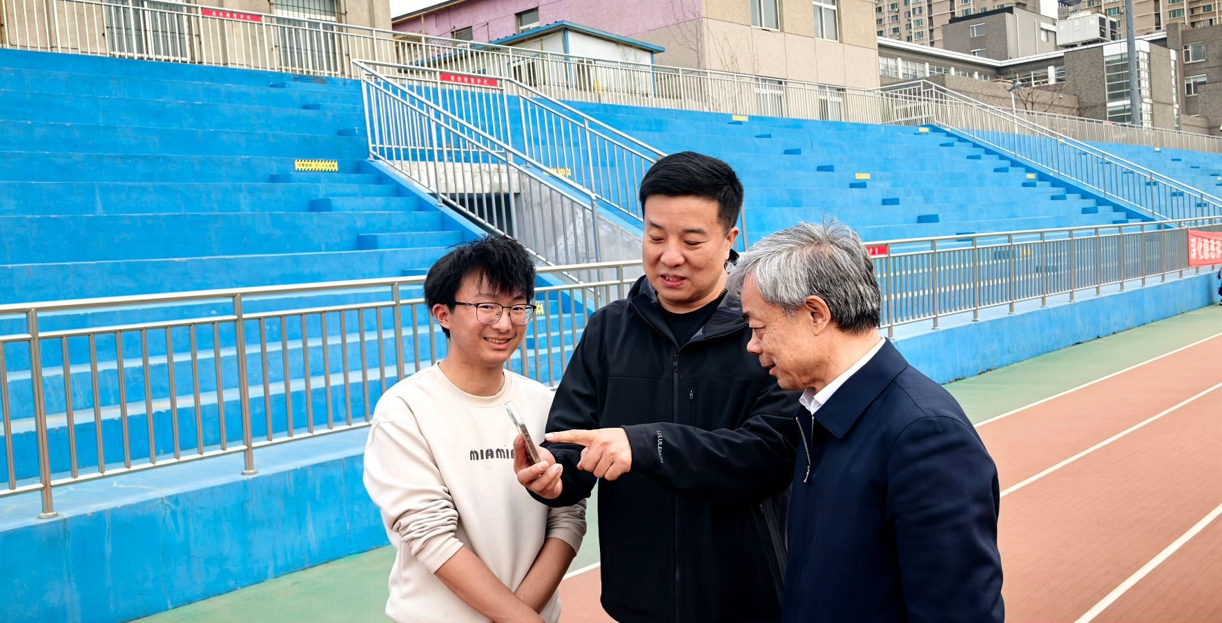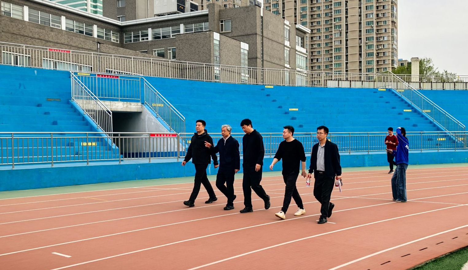 4月16日下午,校长冯夏庭深入学校体育工作一线,实地走访调研体育教学与场馆设施情况。体育部主任孙玉宁陪同调研。