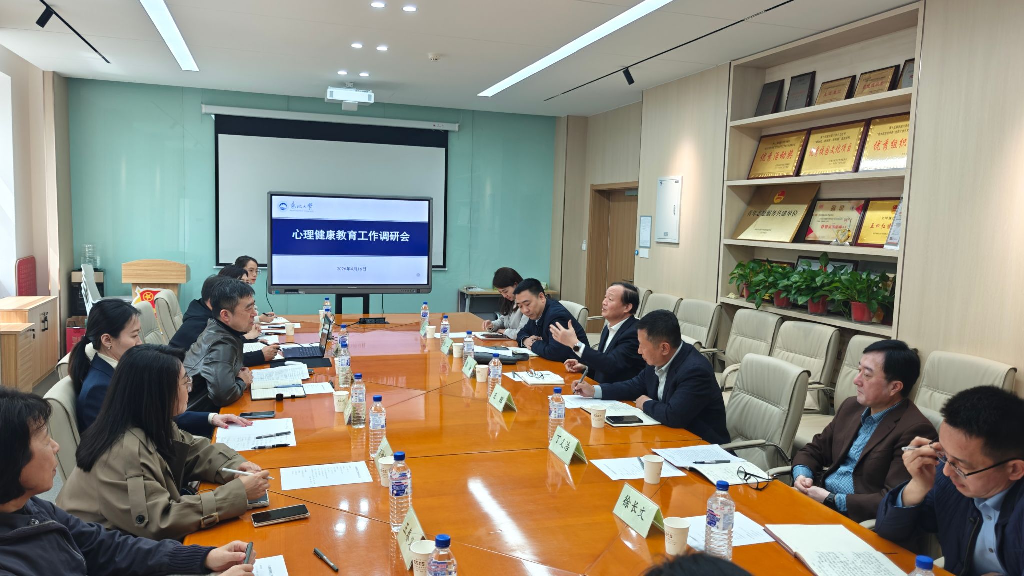4月16日,校党委书记郭海到学生指导服务中心调研心理健康教育工作,副校长王辉陪同调研,党办、校办、团委、研究生院、学生工作处等相关部门负责人,学生指导服务中心有关人员参加调研。