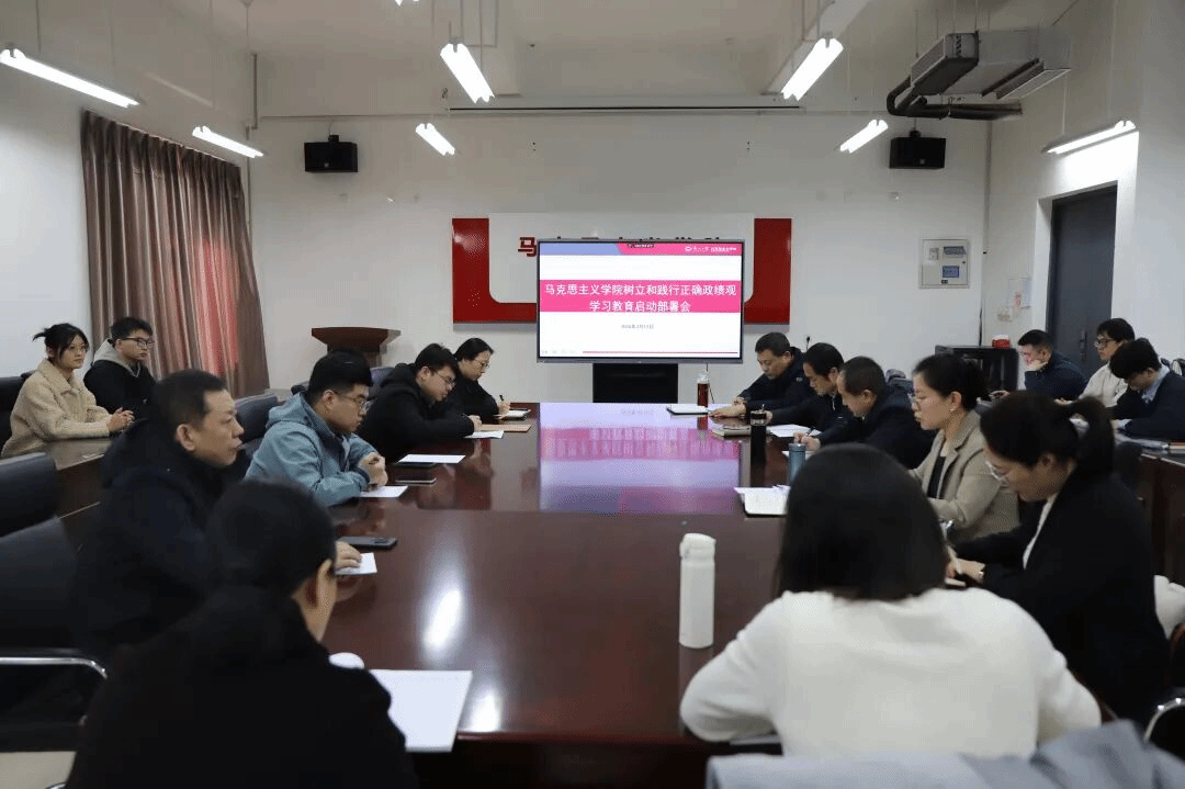 3月12日,马克思主义学院召开树立和践行正确政绩观学习教育启动部署会。学院领导班子成员、党委委员及各党支部书记参加会议。学院党委书记吕静主持会议。