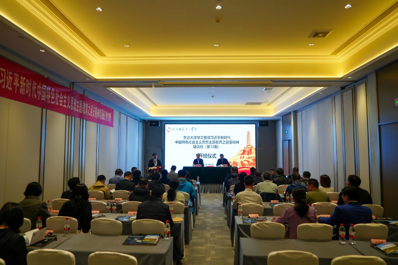 5月6日,东北大学学习贯彻习近平新时代中国特色社会主义思想主题教育之延安精神培训班(第12期)开班仪式在延安干部学院美居培训基地1楼会议室举行。东北大学党委副书记、党校校长王玉琦,党校相关负责人,陕西延安干部学院南泥湾分院院长王东方出席开班仪式。