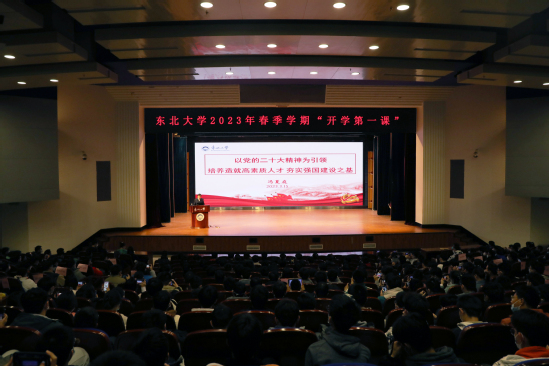 3月15日晚,中国工程院院士、东北大学校长冯夏庭以“以党的二十大精神为引领,培养造就高素质人才,夯实强国建设之基”为题,在汉卿会堂蔡冠深报告厅为学生讲授“开学第一课”。本科生和研究生代表参加学习。