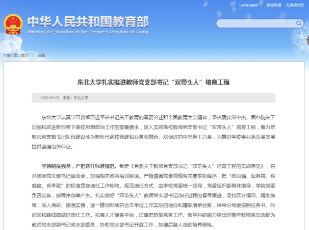 完善基层党建保障机制。积极推进教师党支部书记“双带头人”培育工程,将党支部书记任职履历作为干部选任的优先条件。要求教师党支部书记由高学历、高职称的研究所所长或副所长担任,校机关和直属部门党支部书记由处级干部担任。自2004年起,为每个学院配备专职组织员,建立起分党委书记、党支部书记、党支部委员、党委组织员、党务秘书等分类培训体系,形成专门课程模块,在陕西延安干部学院、沈阳“九·一八”历史博物馆、抚顺雷锋纪念馆和雷锋学院等地建立“东北大学党员干部教育培训基地”,着力提升党务干部的政治素质和业务能力。