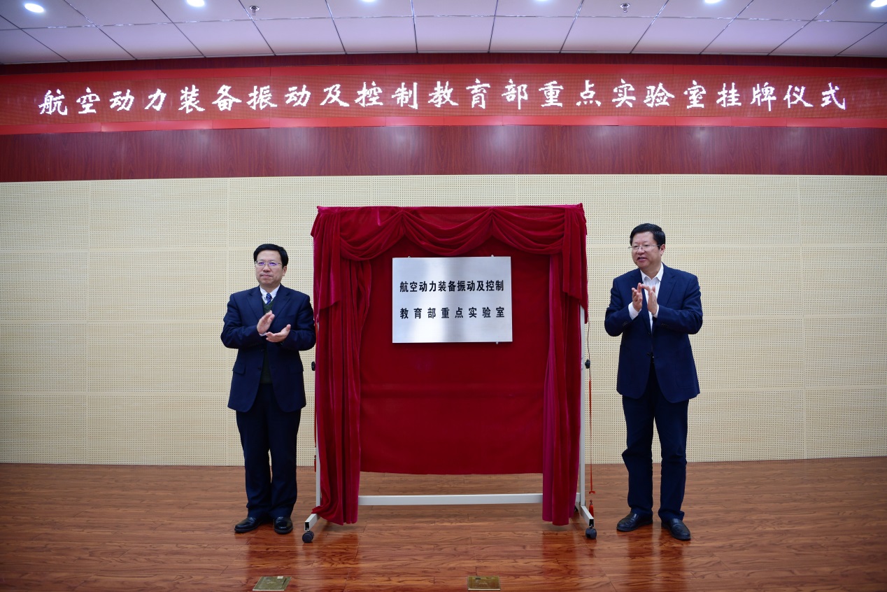 唐立新与孙正林共同为航空动力装备振动及控制教育部重点实验室揭牌。