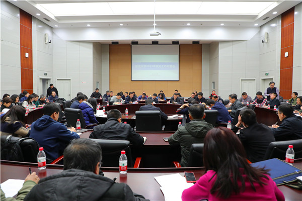 3月13日,东北大学2019年安全工作布置会在主楼824室举行,副校长徐峰出席会议并讲话,各部门安全负责人和实验室安全负责人参加会议。