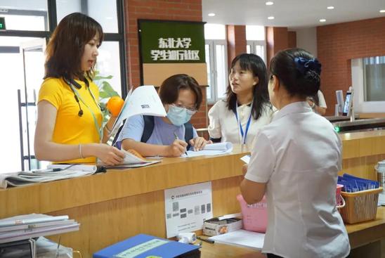 为方便新生报到,今年学校统一组织了一站式报到服务。学生工作处在两校区设立“新生报到处”,数字化迎新突出“三个一”:一是“一站式”办理迎新报到手续,本科新生报到处通过一体化迎新系统,集身份审核、学费查验、打印报到单等众多功能于一身,简单便捷、高效准确;二是“一分钟”内完成相关报到手续,从自动读取学生信息,到对比筛查,最终打印出报到单,一分钟内完成报到;三是“一块屏”实时呈现全校新生报到情况,今年不仅在两校区的主会场设立超大可视化大数据平台,还在学校门前设立了可视化电子屏,同一天生日的新生有几人,同高中、同校伙伴有几个,新生都可以在电子屏上找到自己的“有缘人”;“我与东大的距离”版块,直观展现出新生从祖国各地跨越千里汇聚东北大学的震撼场景。