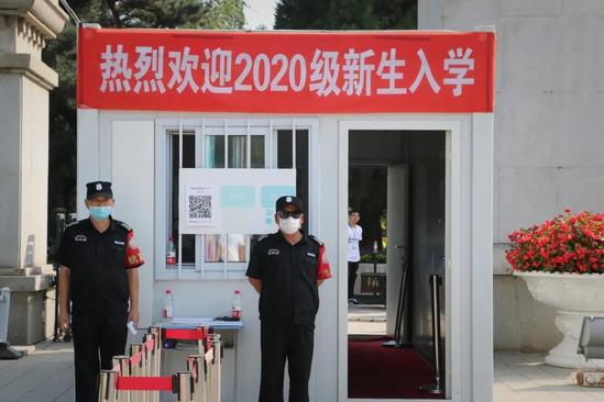 公安处组织安保队伍为学生做好入校服务,大家恪尽职守,认真维护校园周边安全秩序,为学生提供便捷的入校扫码测温服务等,为迎新工作提供良好保障。