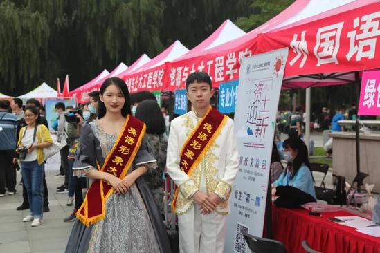 在南湖校区迎新现场,东北大学T-DT学生创新团队进行着机器人展示,东北大学学生科协、学生会、校园传媒联盟等学生组织和社团联合招新的迎新活动,向新生们发出诚挚的邀请。各院系憨态可掬的吉祥物,清晰醒目的指示牌,富有特色的“新生留影处”,身着特色服饰的少数民族学生,都在一一诉说着秋日里醇厚的祝福与希冀,向东北大学的新主人发出最温暖的问候:“欢迎你,2020级本科生!”