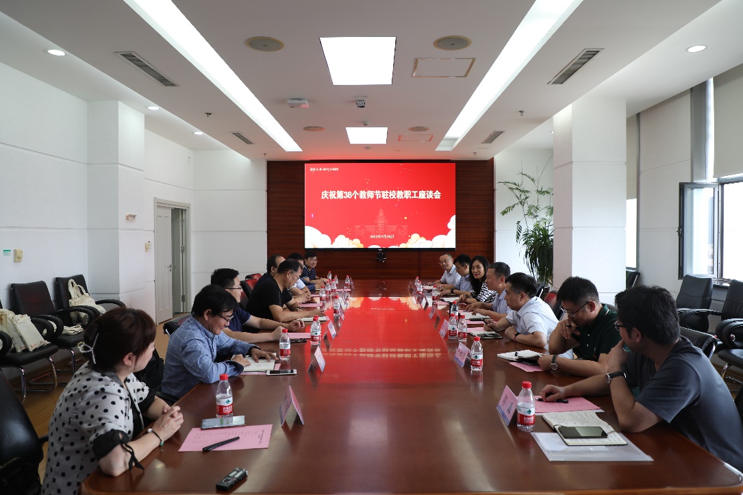 9月10日,东北大学庆祝第38个教师节驻校教师座谈会在主楼1304室举行。副校长王辉出席会议,相关职能部门负责人、驻校干部、专任教师代表等参加会议。