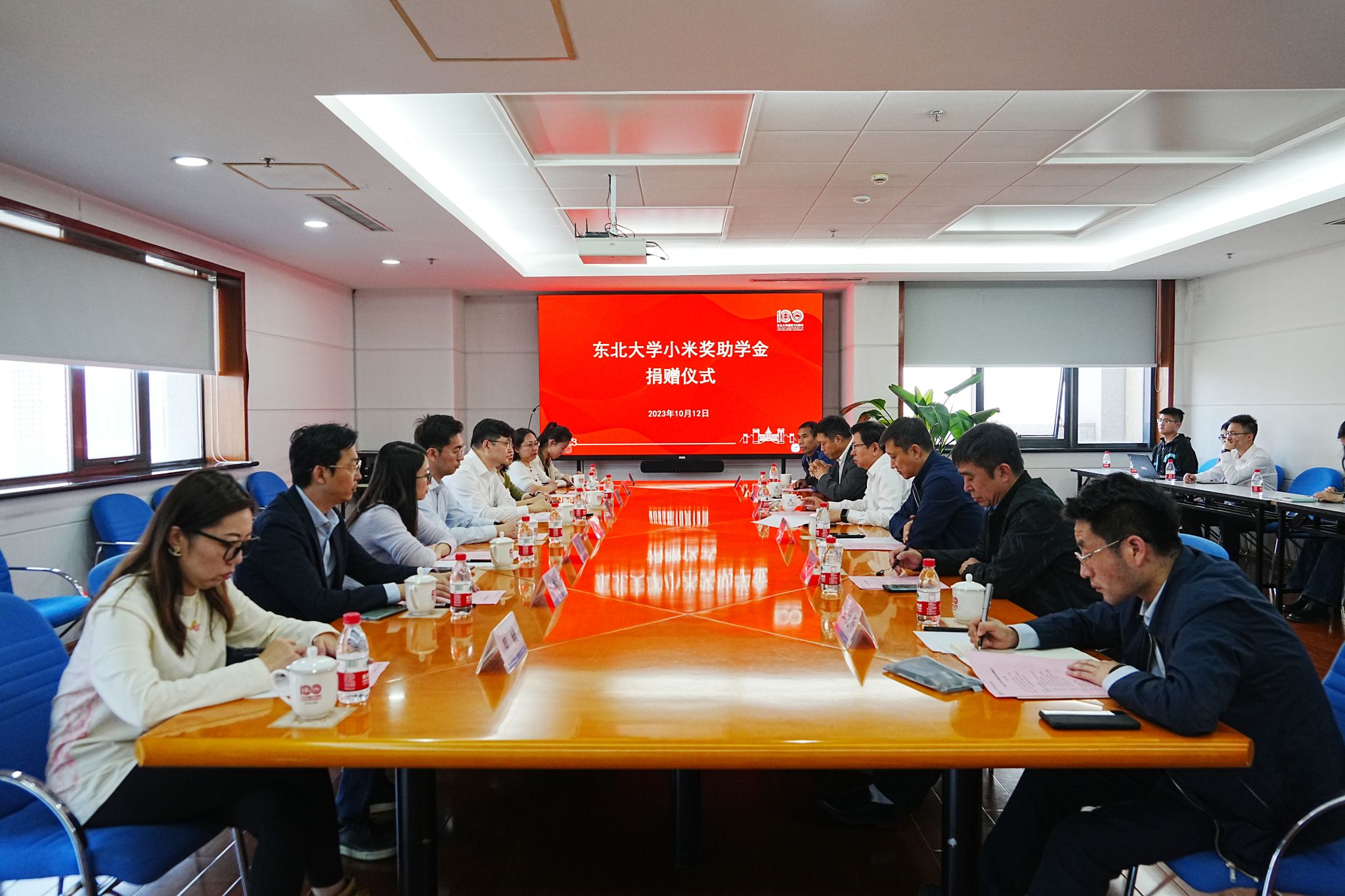 10月12日,东北大学小米奖助学金捐赠仪式在主楼1401室举行。小米集团副总裁、技术委员会主席屈恒,小米公益基金会副秘书长高文隽,小米集团技术委员会技术合作总监陈虹雨,手机部高级分析经理张亚军,高级算法工程师熊清,小米集团辽宁分公司总经理桂雄振,小米公益基金会项目经理任杰,东北大学副校长孙雷出席捐赠仪式。