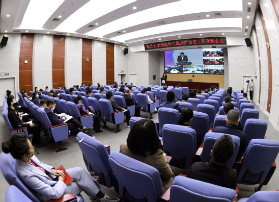 3月18日,东北大学召开2021年全面从严治党工作视频会议,深入学习贯彻习近平总书记在十九届中央纪委五次全会上的重要讲话和五次全会精神以及教育系统全面从严治党工作视频会议精神,总结和部署学校全面从严治党和党风廉政建设工作。会议在主楼822室设主会场,秦皇岛分校和各分党委(直属党总支)设分会场。学校领导班子成员、党委委员、纪委委员、中层副职及以上领导干部300余人参加会议。校长冯夏庭主持会议。