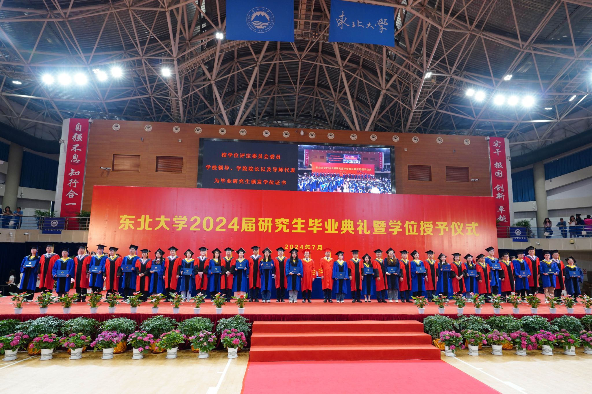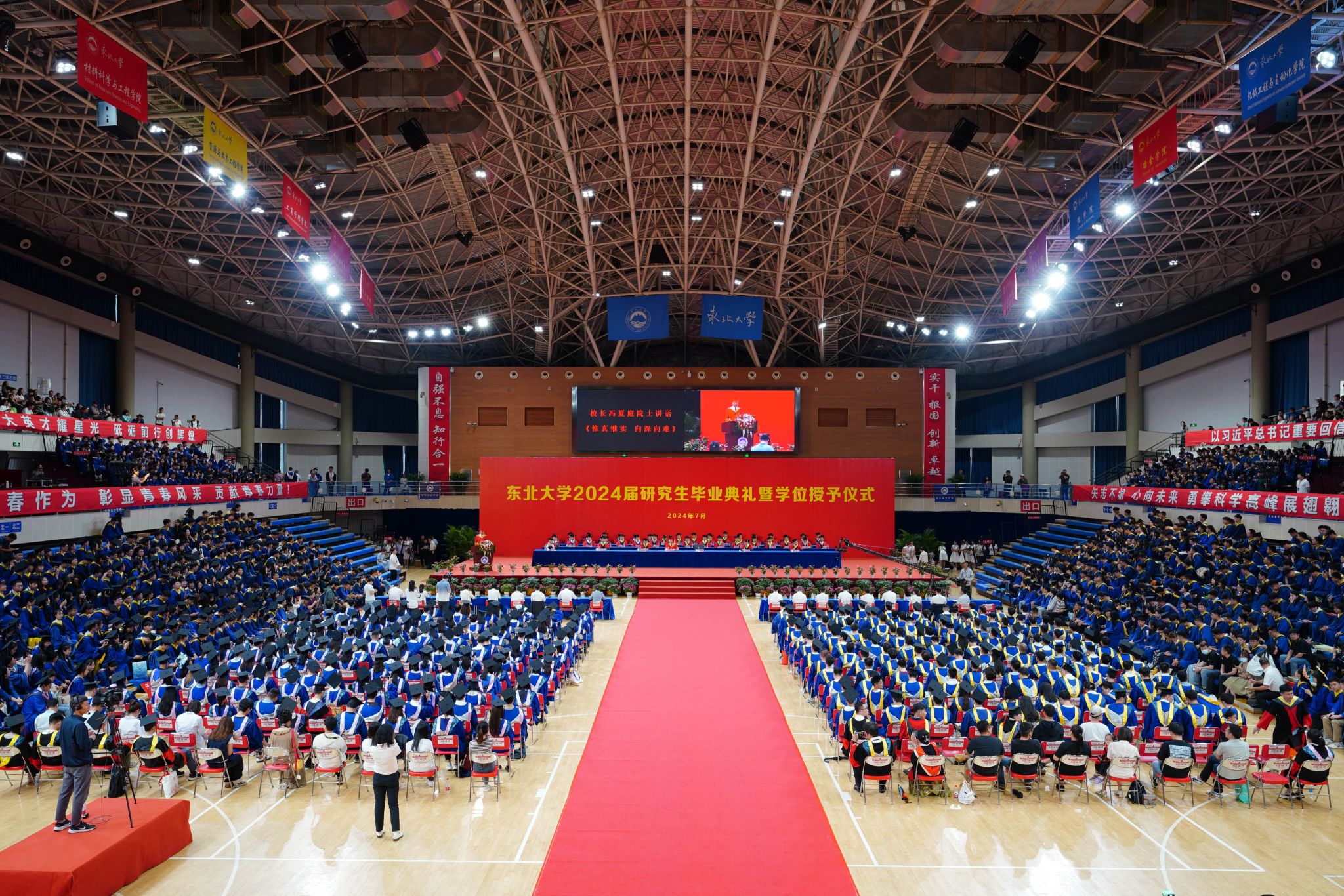 7月3日下午,东北大学2024届研究生毕业典礼暨学位授予仪式在刘长春体育馆隆重举行。校党委书记郭海,校长冯夏庭,党委副书记王玉琦,副校长王强、张皓出席典礼。秦皇岛分校、各学院和相关部门负责同志、导师代表、学生工作相关同志以及2024届研究生毕业生参加大会。毕业典礼由研究生院常务副院长刘承军主持。