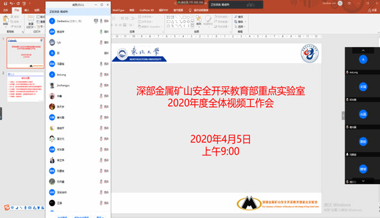 4月5日上午,深部金属矿山安全开采教育部重点实验室举行2020年全体教工视频工作会,副校长、实验室主任冯夏庭参加会议。