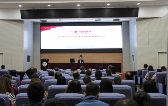 赵继围绕深入学习习近平总书记关于高等教育的重要论述、认识和把握大学发展规律、努力建设“中国特色、世界一流”大学三个方面内容展开党课。