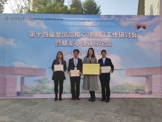 11月14-15日,第十四届全国高校心理委员工作研讨会与朋辈心理辅导论坛在四川师范大学举行。东北大学被授予“全国心理委员研究协作组理事单位”,学生指导服务中心心理健康教育中心武琳受聘为“全国心理委员研究协作组理事单位理事”,艺术学院环境设计专业1702班徐子惠获第二届“全国百佳心理委员”荣誉称号,工商管理学院会计专业1701班刘育培、生命科学与健康学院生物工程专业1701班曹慧峥两名同学获得第二届“全国百佳心理委员”提名奖。