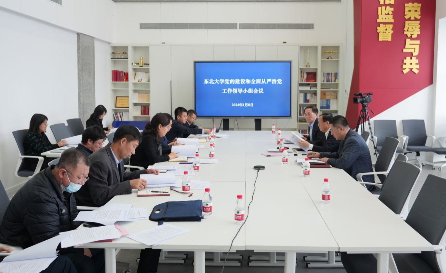 1月8日,东北大学党的建设和全面从严治党工作领导小组在主楼1401B会议室召开专题工作会议。学校党的建设和全面从严治党工作领导小组组长郭海,副组长王玉琦、吴豪伟出席会议,领导小组副组长孙正林以视频连线方式参会,领导小组成员部门主要负责人参加会议。王玉琦主持会议。