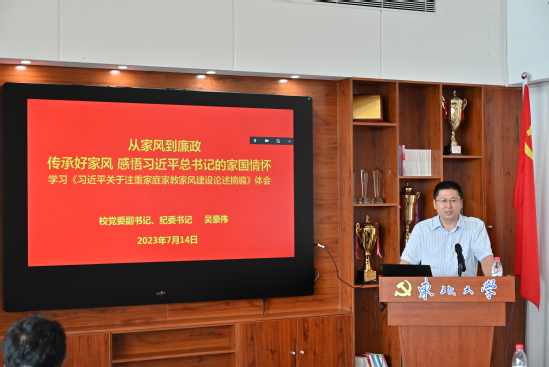 7月14日,校党委副书记、纪委书记吴豪伟在主楼1417室为纪委办、巡察办全体工作人员,二级纪委书记、副处级纪检委员和秦皇岛分校纪检干部讲授题为“从家风到廉政 传承好家风 感悟习近平总书记的家国情怀”的专题党课。