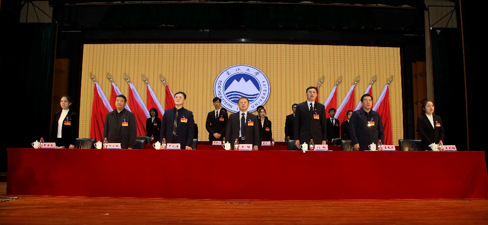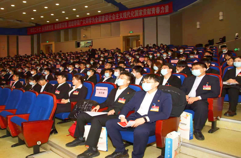 伴随着激昂的国歌声,大会开幕式拉开帷幕。校团委负责人代表共青团东北大学委员会致贺辞。
