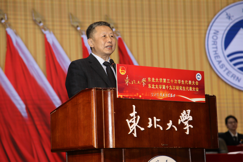 王辉向长期以来给予东北大学和学校学生会、研究生会工作大力支持的上级团学组织表示衷心的感谢,向全校学生致以亲切问候和美好祝福,向第十七届我最喜爱的老师获奖者表示诚挚的祝贺。王辉表示,学生代表大会、研究生代表大会是学生在校期间参与学校民主治理的重要途径。希望同学们坚定理想信念,培养可以受用终身的科学思维方式和运用知识的能力,在博学强识中夯实基础,在矢志创新中提升能力,在实践实干中增长本领,自觉把人生理想融入党和人民的事业中。希望各级学生会、研究生会组织加强自身建设,坚持从严治会,全面服务同学成长,切实维护同学利益,不断提升同学满意度、大局贡献度、社会认可度,发挥好推动学校事业发展的积极作用,让学生会、研究生会改革的成果惠及全体同学,贡献东大学子的青春力量。